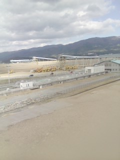 だだっ広いそのなんにもない土地には、工事用の長いパイプ状の橋桁と巨大な土の山と大型クレーンしかなく、その広原に強風による土ほこりが舞っている。
