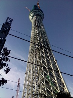 現在の高さ 318m ここに越してきた去年の10月は198mだったので、半年足らずで100m以上伸びたんだねー。 がんばったね、東京スカイツリー。 でもまだ半分だ、がんばれ東京スカイツリー!